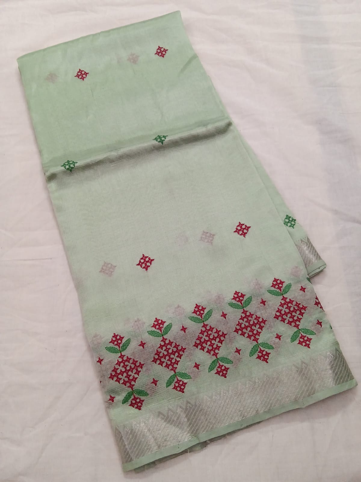 Hand woven mangalagiri silk cotton ( LT ) MACHINE EMBROIDERY sarees with small zari border