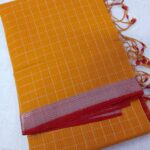 Hand woven mangalagiri pure cotton zari checks sarees with small border