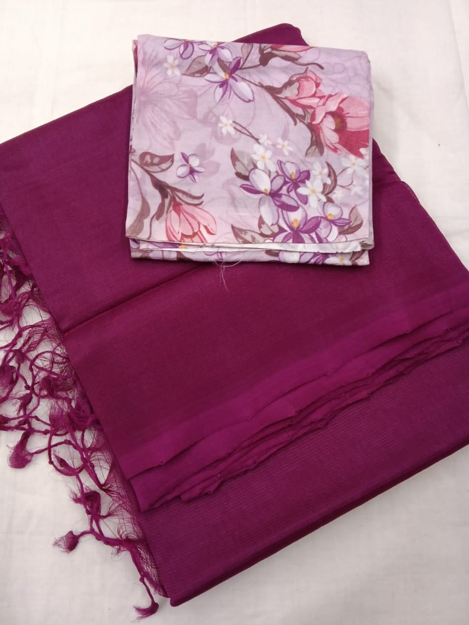 Hand woven mangalagiri silk cotton (LT) plain sarees paired with extra contrast silk digital print blouse.