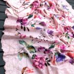Tussar silk floral digital print with floral embroidery work & cutwork border